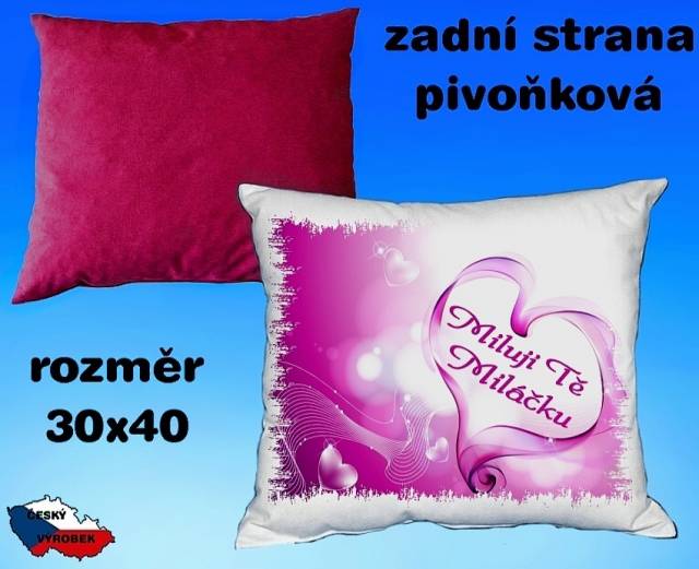 Polštářek 35x35 cm . Složení 100% polyester. Materiál něco podobného jako broušený samet . Výplň polyesterová střiž .Obrázek je vypálen přivyok teplotě do látky - neze opat nismít