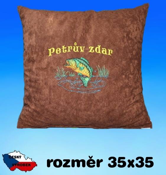 Vyšívaný polštářek pro rybáře - rozměr je 35x35 cm - složení 100% polyester - výplň polyesteroá střiž